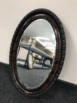 An Edwardian mahogany oval bevelled mirror