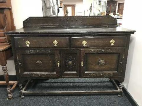 An early 20th century carved oak sideboard