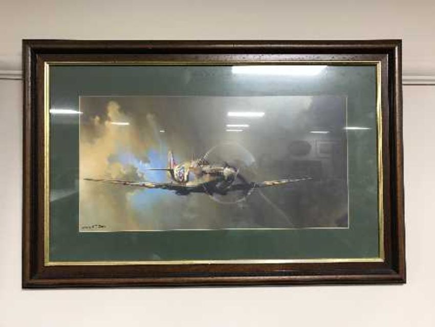A mahogany framed print - The long journey home by A. Rigby together with a mahogany framed print - Spitfire by B Clarke