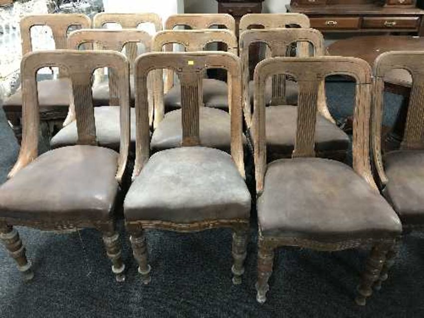 A set of fourteen Victorian oak dining chairs