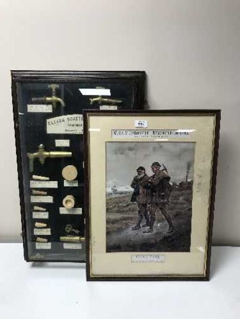A framed weekly chronicle print - Going home, together with a framed collection of brewery taps