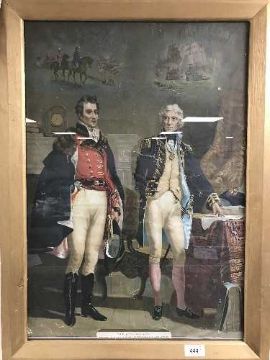 A gilt framed colour print - The Army and Navy depicting Wellington and Nelson