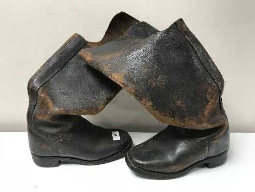 A pair of vintage leather heavy duty boots
