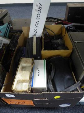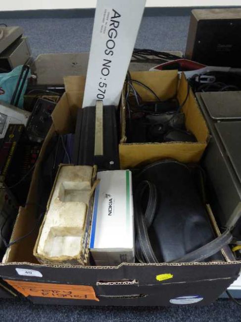 A box of camera equipment, boxed walkie talkies, boxed Nokia mobile phone, radio etc