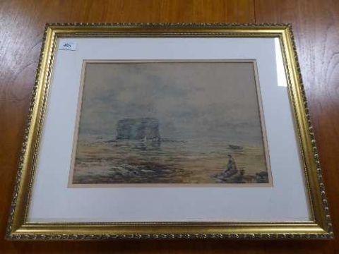 19th century school : Marsden Rock, watercolour, 37 cm x 26cm, indistinctly signed, framed.