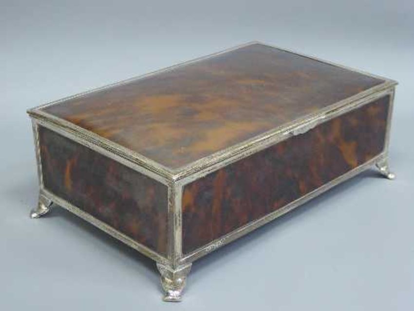 A fine silver mounted tortoiseshell dressing table casket, 25 cm x 15 cm x 9 cm