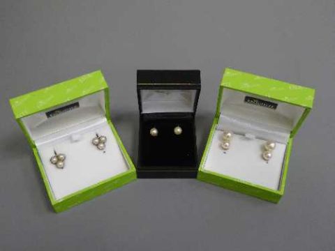Three pairs of pearl earrings set in gold, one 18ct. (3)