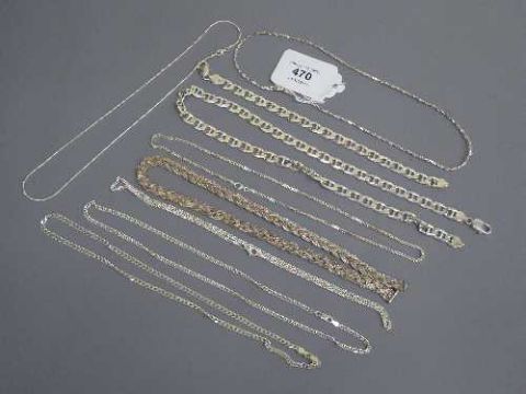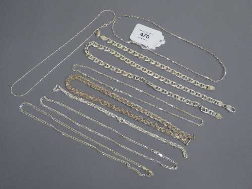 A collection of silver chains and bracelets (Q)