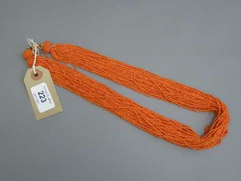 An antique multi-strand coral necklace with yellow metal clasp