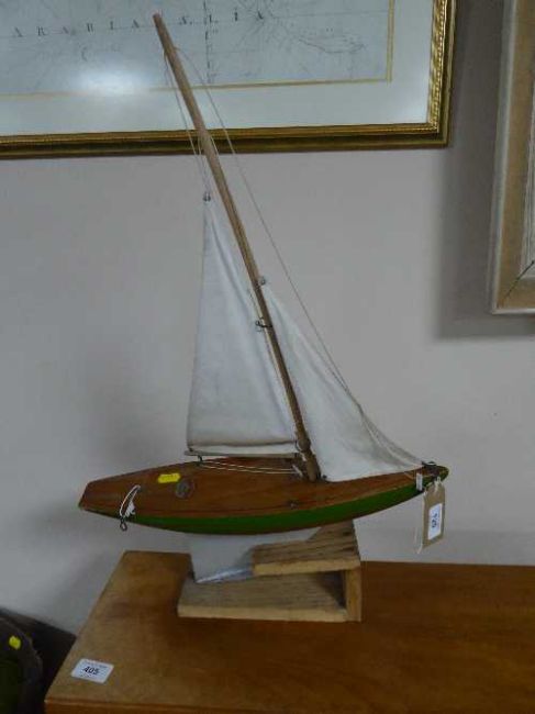 An Ailsa pond yacht on wooden stand