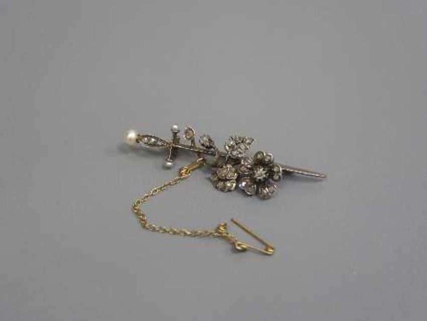 A Georgian brooch modelled as a dagger and flower with rose-cut diamonds and seed pearl pommel