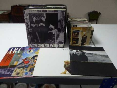 A case containing LP's including Susie and the Banshees, Gary Newman etc, together with a box of 45's - The Specials, Adam and the Ants etc
