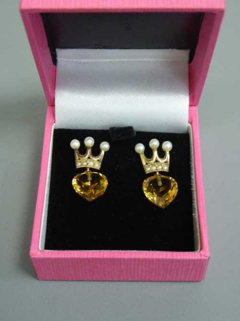 A pair of antique citrine and pearl earrings