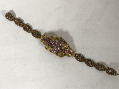 A Georgian gold cuff bracelet set with pink sapphires and emeralds, length 17.5 cm, 14.8g.