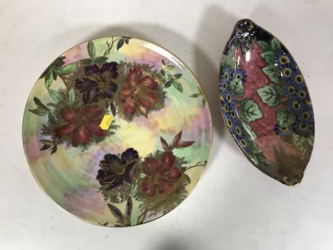 A Maling lustre plate with floral decoration and a Maling dish