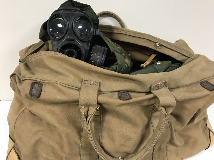 A large holdall containing army DP holdalls, gas masks etc