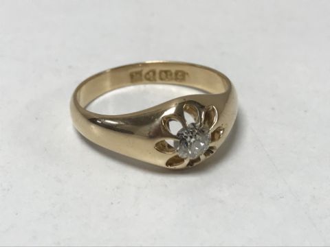 18ct antique signet ring set with old cut diamond, approximately .5 carat 4.7 grams