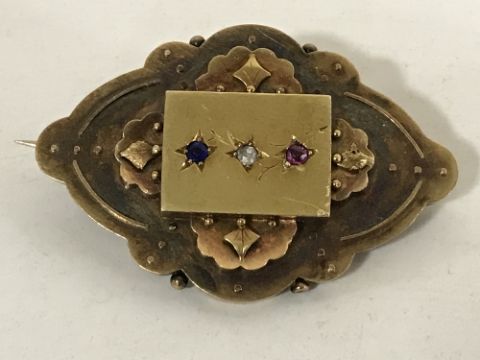 A Victorian sapphire, diamond and ruby brooch, 10.8g,