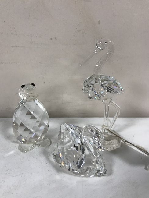 Three Swarovski animals - penguin, swan and stork