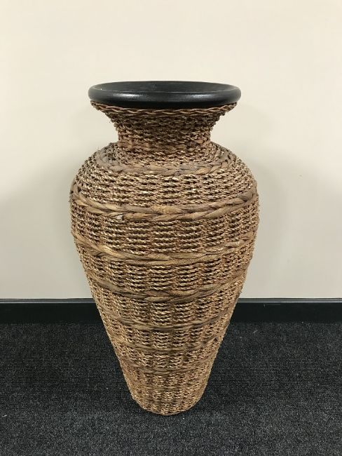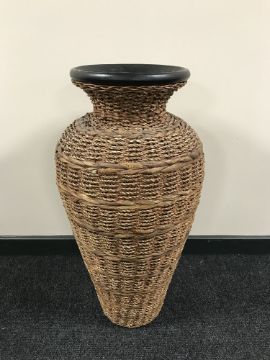A large pottery and wicker vase, height 80 cm