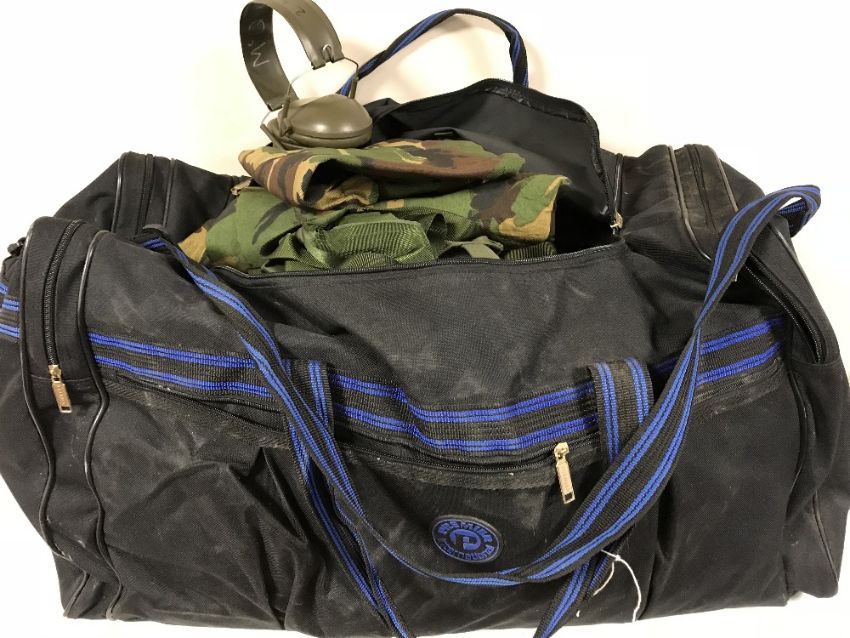 A large holdall containing army DP clothing