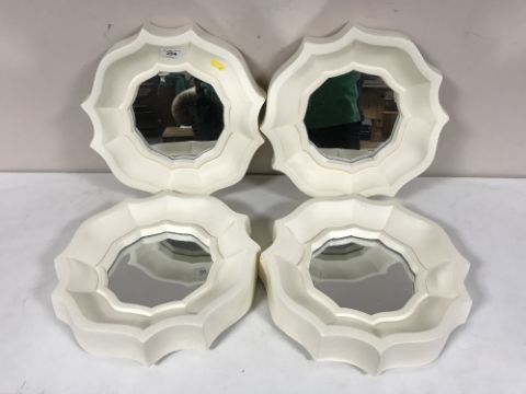 Four scalloped edged framed mirrors