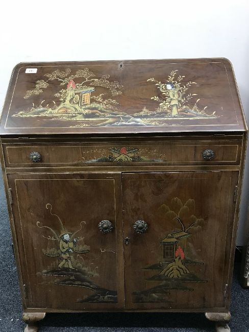 A walnut oriental style writing bureau