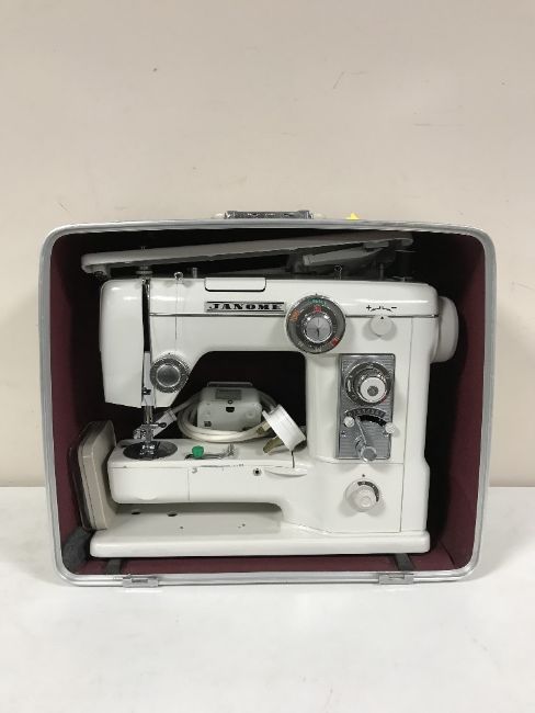 A cased Janome sewing machine