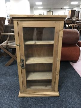 A pine glazed door curio cabinet