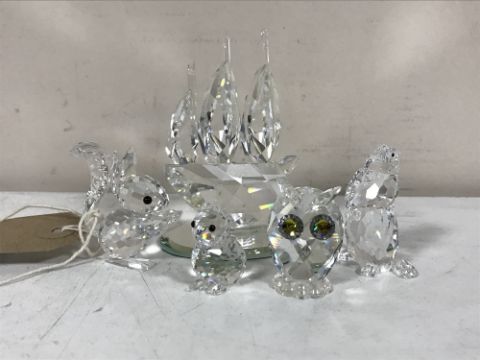 Four Swarovski animals - owl, beaver, squirrel etc and a Swarovski crystal galleon