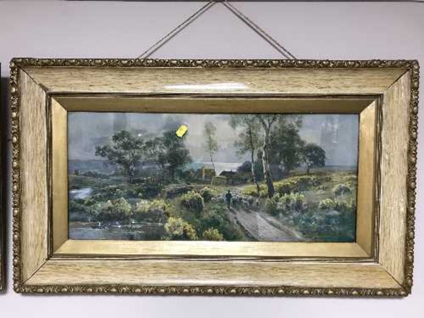 A pair of antiquarian gilt framed prints - sheep in rural landscape