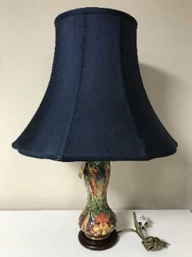A Moorcroft Flames of the Forest table lamp with shade, lamp base 31cm