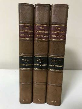 James McQueen : The Campaigns of 1812, 1813, 1814 and 1815, also, The Causes and Consequences of the French Revolution, to which is added, The French Confiscations, Contributions, Requisitions etc from 1793 till 1814. Volumes I to III, Publisher Edward Khull & Co, Glasgow, 1816. (3)