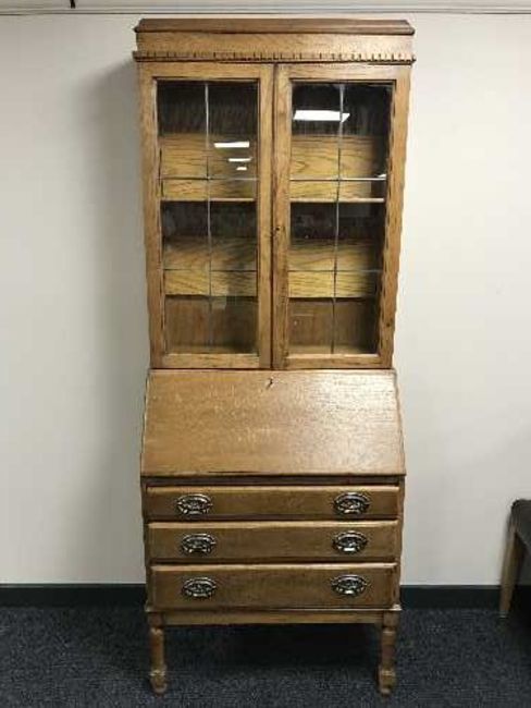 An oak leaded glass door bureau bookcase