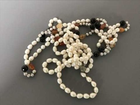 A large single and double strap of fresh water pearls