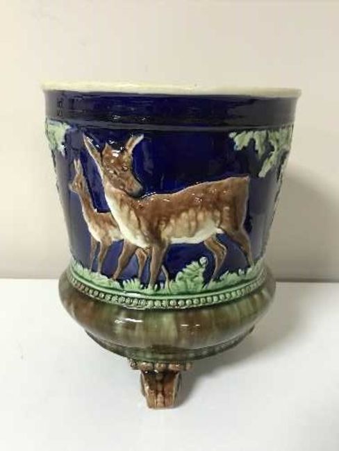 A Majolica style planter decorated with deer
