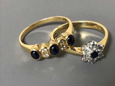 Two 18ct gold sapphire and diamond rings, 6.6g