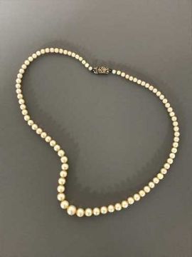 Fine quality strap of graduated pearls on a white gold diamond clasp
