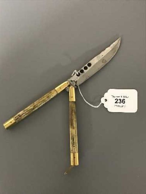 A Filipino Balisong knife with bone grips, probably WWII period