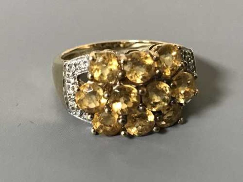 A 9ct gold citrine and diamond ring, size O