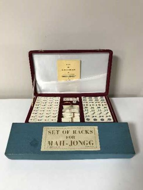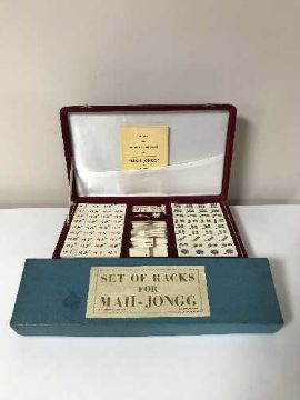 A cased Mahjong set together with a boxed set of Mahjong tile racks