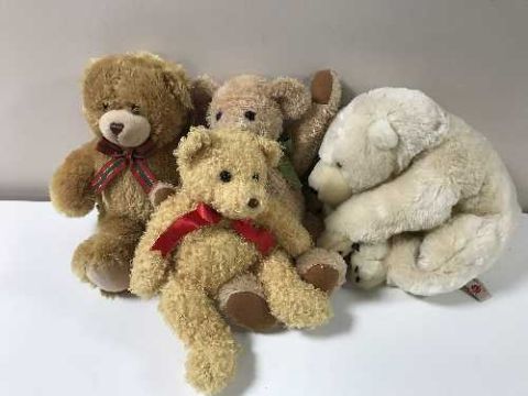 A box containing Scalectrix, assorted Triang rolling stock and track, together with a box of assorted soft toys