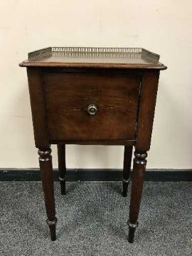 A Victorian mahogany pot cupboard with galleried top