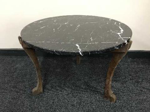 A marble topped coffee table on oak base
