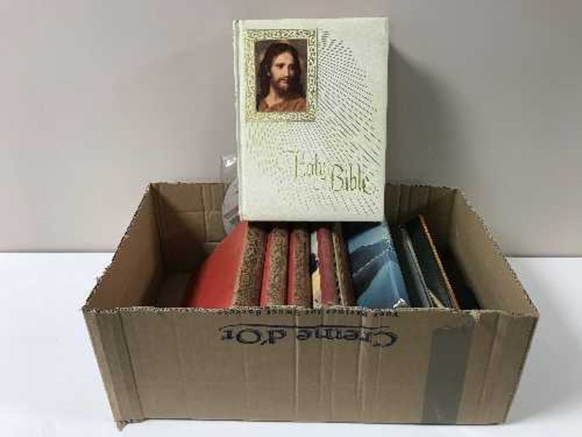 A box of books - Family Edition Holy Bible, three volumes The History of the Great War, Elvis annual etc a Phillips Planisphere