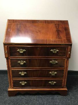 An inlaid mahogany bureau and matching TV stand