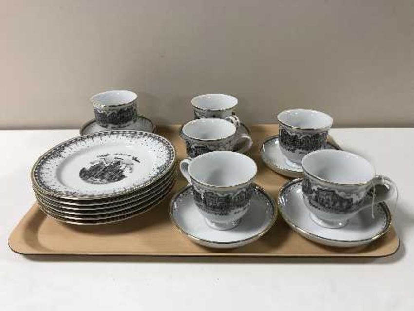 An eighteen-piece china tea service, depicting scenes of Stanley