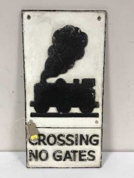 A cast iron railway relief plaque - crossing no gates