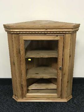 A pine glazed door hanging corner cabinet