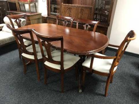 A twin pedestal extending dining table and six chairs
